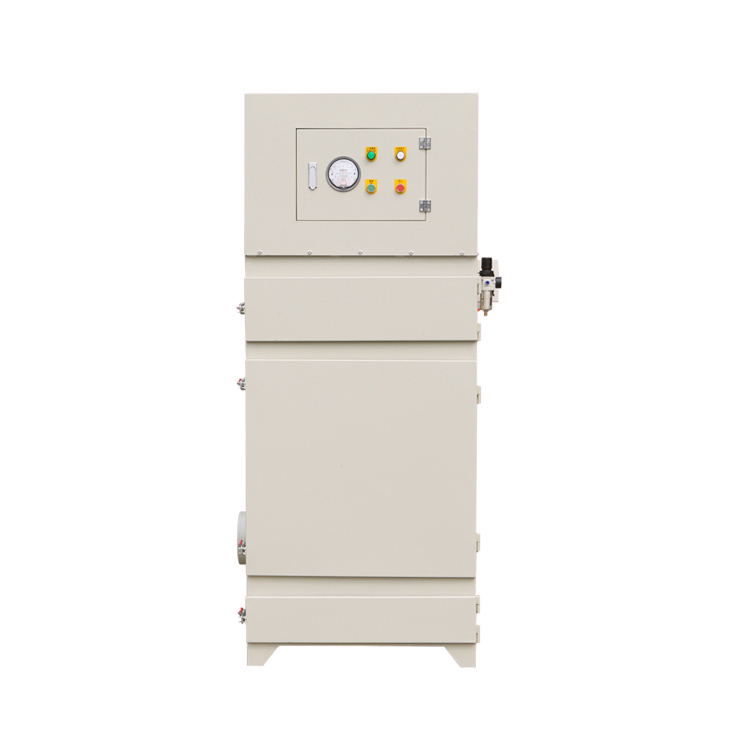 将机组放置独立的除尘间,配置相应的风管及吸尘罩与除尘器连接,插通电源,开启风机键,含尘空气从尘源经吸尘罩、风管、进风口进入箱体,因气流突然护张,流速骤然降低,大粒经粉未在其自重的作用下以含尘空气中分离而沉降至盛灰抽屉中,其余尘粒由于滤筒的筛滤、碰撞、钩挂、静电等作用,被滞留于滤芯外壁,净化后的空气由风机经出口排出。本机组净化后的空气可直接排放室内循环使用,无通风热量(冷量)损失。采用自动脉冲清灰,清灰过程中无需停机。由于采用脉冲清灰,用户需自备气源。